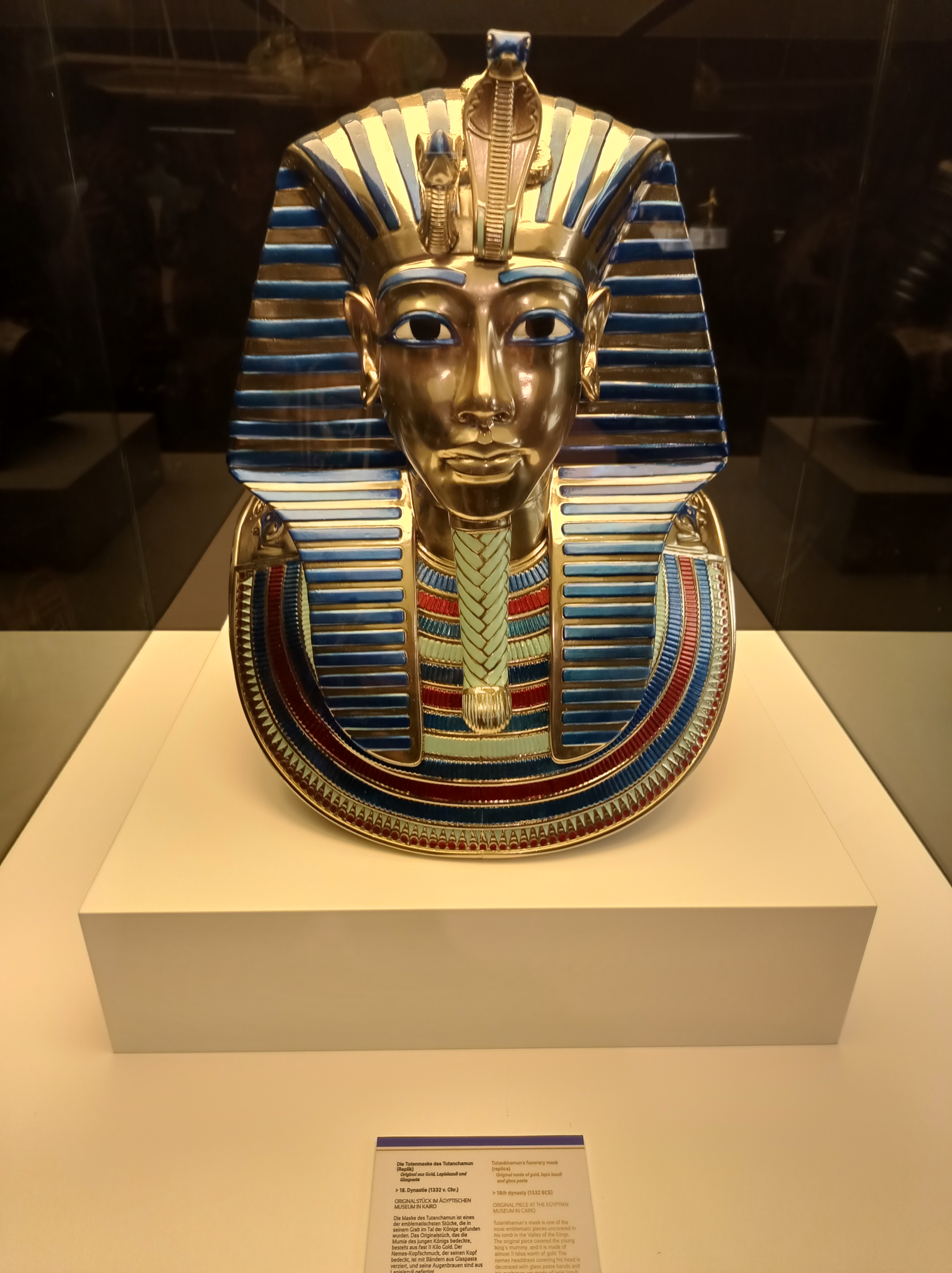 Neben nämlicher Vitrine stand nun endlich (in einer Ecke) DIE Goldmaske des Tutanchamun, wohl eines der bekanntesten Objekte aus dem alten Ägypten.